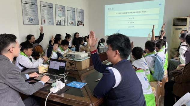 随后的有奖问答环节将活动气氛推向高潮。“污水处理有几个主要环节?”“污水进入污水处理厂的第一道关卡是什么?”“九龙厂处理后的水排入了哪条河?”题目刚一抛出,孩子们便争先恐后举手抢答,现场气氛热烈非凡。