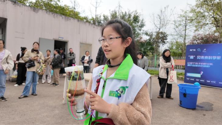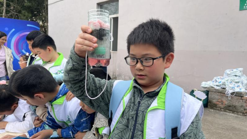 小朋友展示自己的滤水装置(主办方供图)