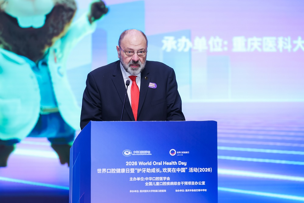 世界牙科联盟(FDI)主席Dr. Nikolai Sharkov在致辞中表示,世界口腔健康日已在全球200多个国家和地区落地,今年是2024—2026全球主题活动收官之年,旨在传递口腔健康贯穿全生命周期、是身心健康重要基石的核心理念。他高度肯定中华口腔医学会的长期努力,呼吁政府、学校、家庭与专业机构协同发力,让人人享有优质口腔保健服务,以健康口腔守护幸福生活,共同推动全球口腔健康事业发展。