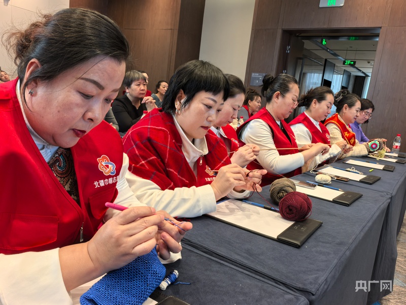 “爱心妈妈”现场展示编织技艺(央广网记者 邵玉琴 摄)